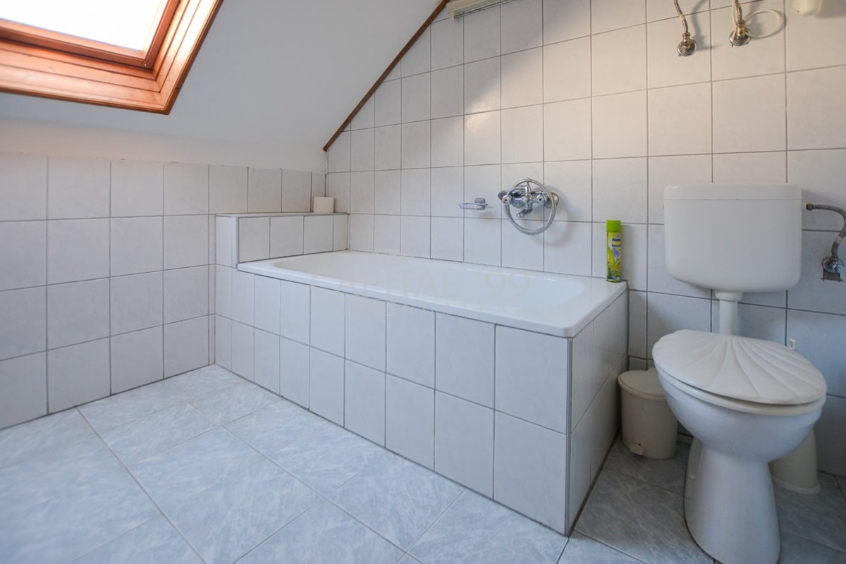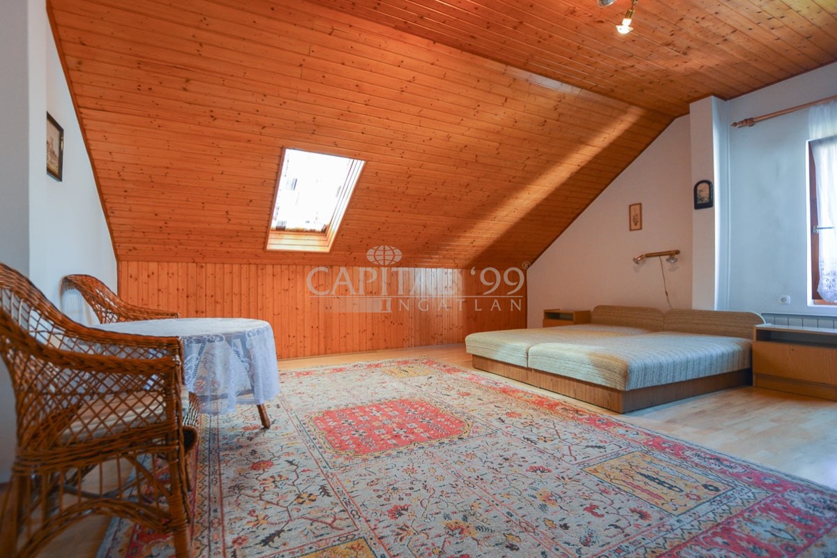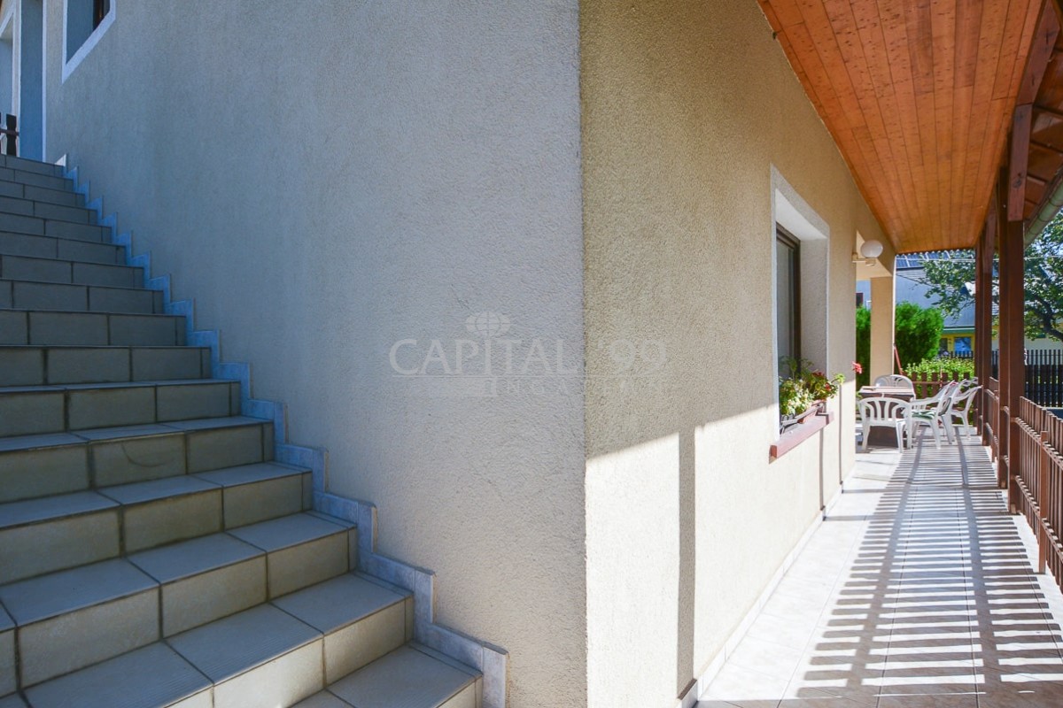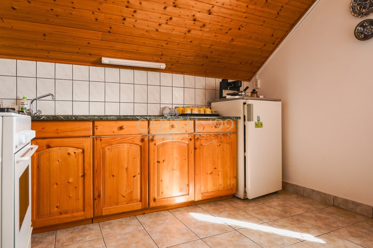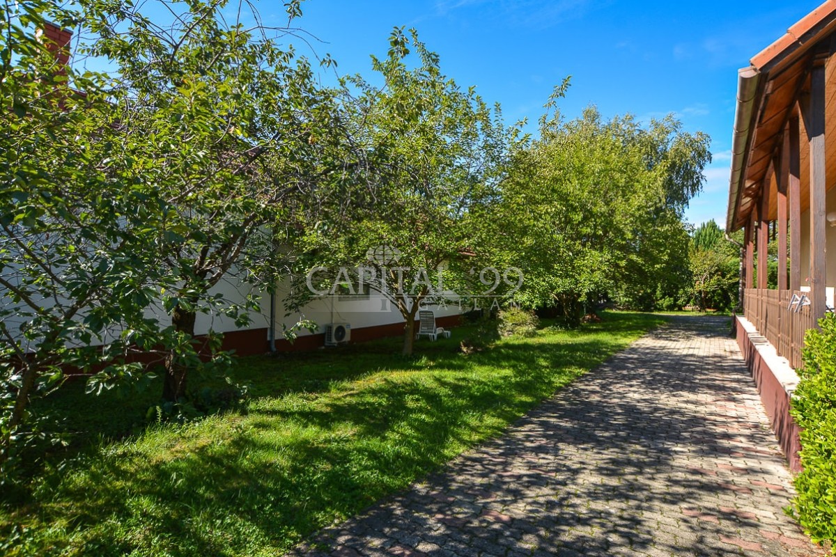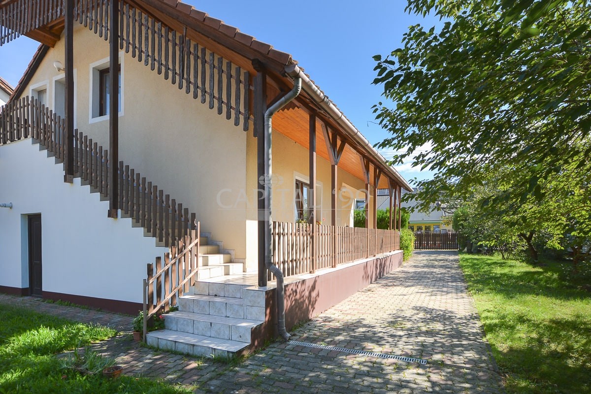 Centrally located in Gyenesdiás is this constantly maintained detached house comprising two residential units is for sale. The house is characterised by large interior rooms. The two storeys have separate entries. A kitchen, bathroom + toilet and bedroom are availabel on both storeys. The garden comes with a garage, and a guest apartment with kitchen, bathroom + toilet, bedroom. The house is heated via gas central heating, and additionally there is a tiled stove on the ground floor btween the sitting room and the bedroom. The house is ideal for using as permanent residence. The lot is lovingly tended, it is planted with evergreens and fruit trees. The Lake Balaton is 800 metres away. er Plattensee liegt 800 m weit entfernt.