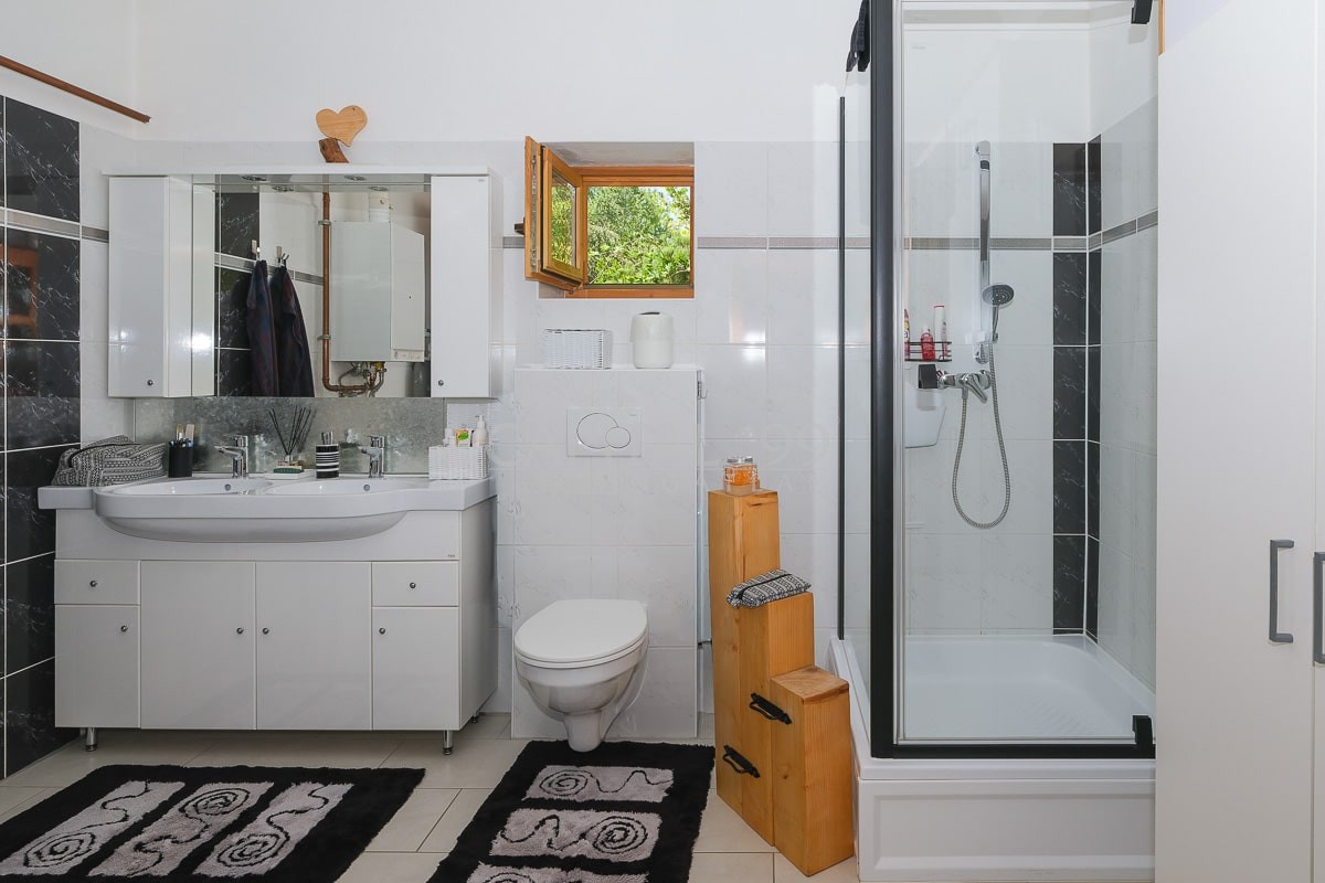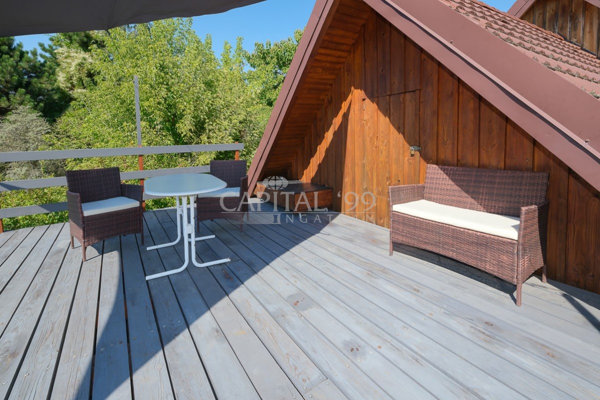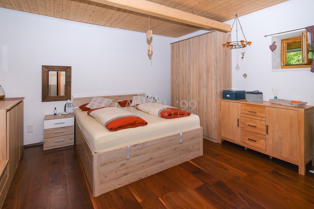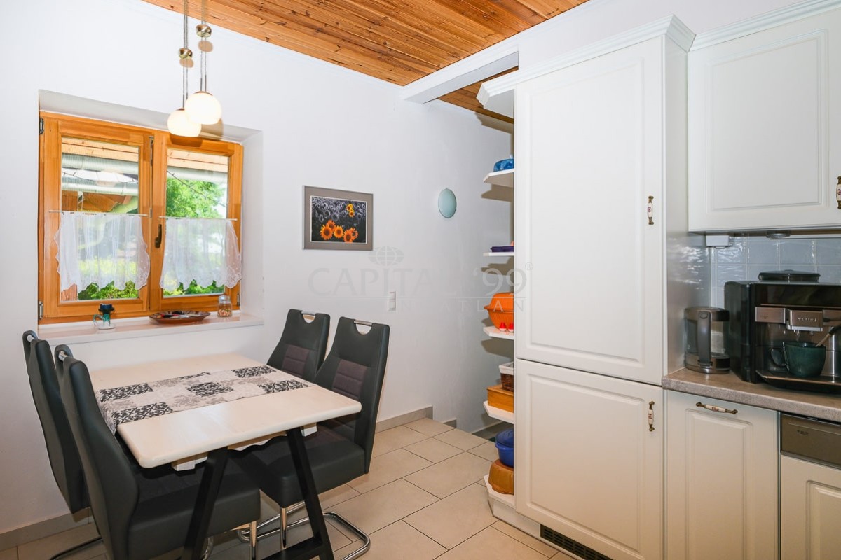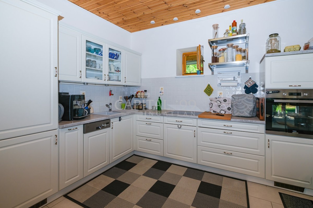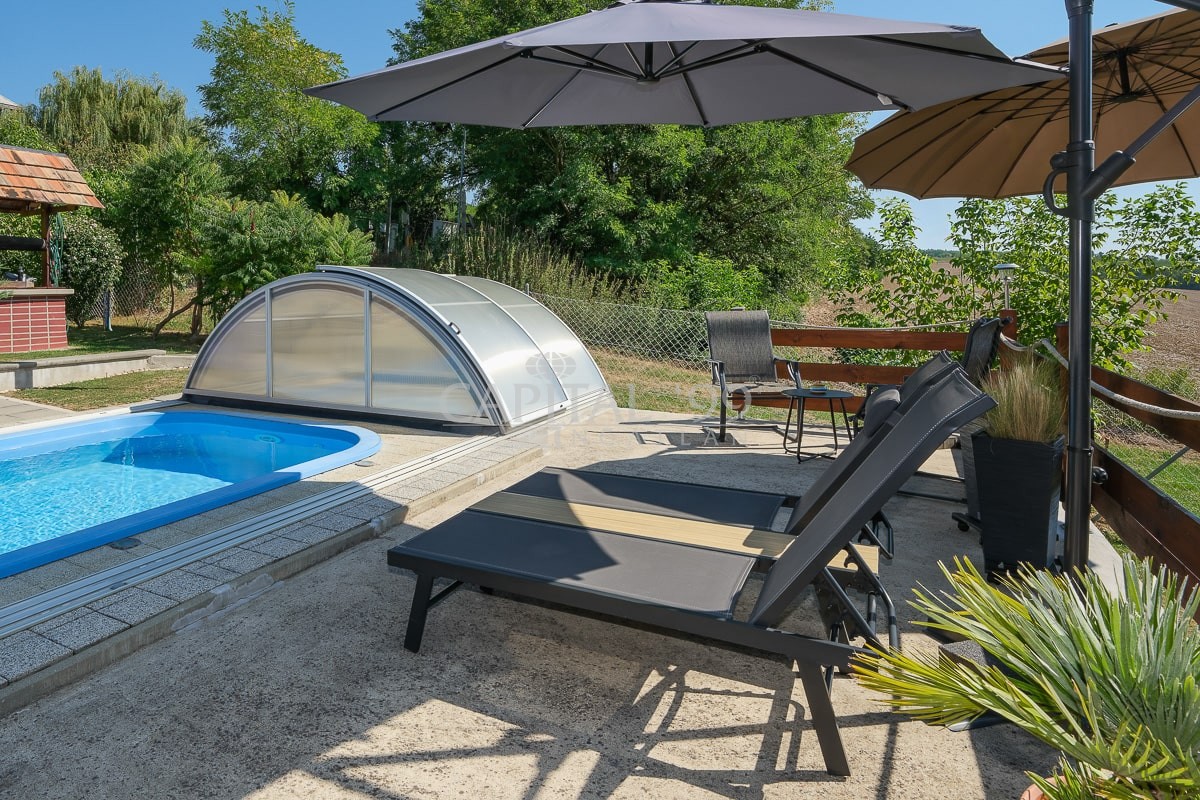 code number: 4335In the settlement of Nemesbük, next to Hévíz, the world famous spa town, is this nice and cosy cottage for sale. The detached house was built in the second decade of the last century, and in the year 2014 ist was completely refurbished. During the refurbishment works the house was endowed with a new roof, new windows and doors in and out. All basic public mains pipes and wirings have been changed (water, waste water and electricity). All tiles and parquets are new, and new sanitary wares were built in. New is the kitchen, the kitchen appliances, a wonderful tiled stove was built as alternative to the basic gas heating system the house is heated with. The attic floor was converted into a bedroom, a restroom and a study. The lot is lovingly cared for, it is planted with ornamentals. The yard comes with a counter-current swimming pool, with a terrace and a gazebo. The lot is endowed with a dug well, which is fit for garden irrigation.