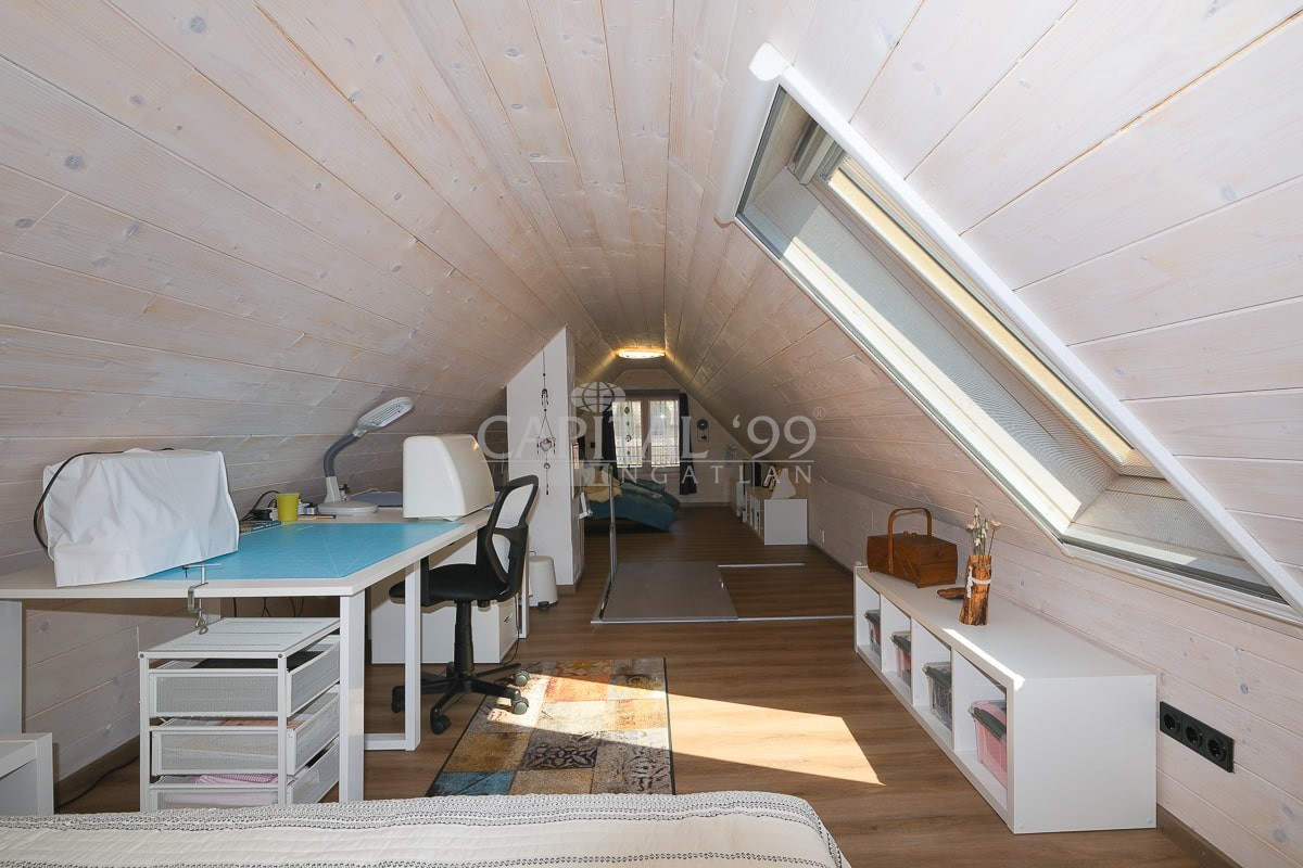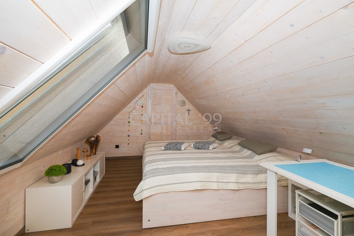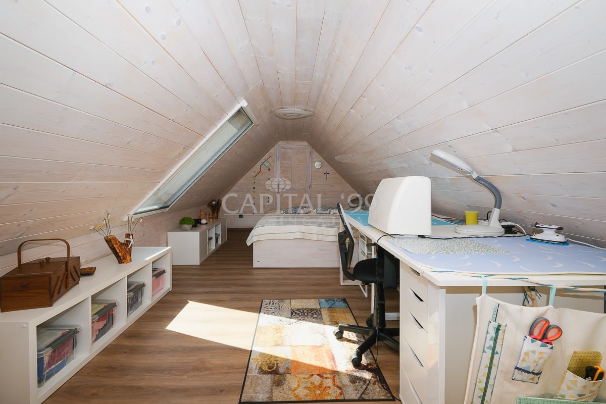 Attic floor 35 sqm: bedroom, restroom.