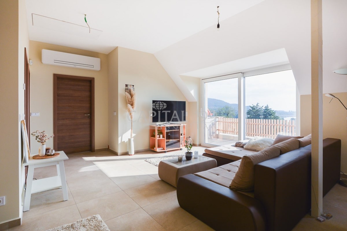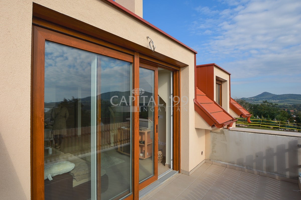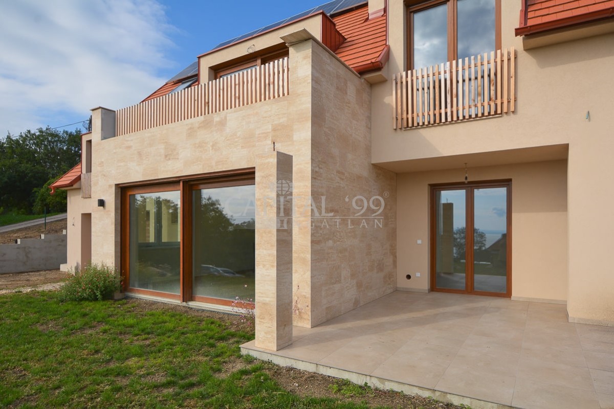 code number: 4337New detached house built in quality construction materials, silently located in Badacsonytomaj in stunning natural surroundings is for sale. The house is south facing, an impressive panoramic view of the Lake Balaton opens from both the ground floor and the attic floor. Both storeys come with an own, separate entry, thus this property is fit for two generations as well. The house is characterized by substantial, light-filled spaces. The house is heated via air source heat pump, technical equipment is of the brand Daikin. Additionally the house is fitted with a 10.5 kW solar system, as a supplement to the electricity mains. The quoted sales price refers to the condition in which it is in this construction phase. The house is a great fit for use as permanent residence, but as holiday home it makes also an ideal choice. The Lake Balaton is only 800 metres. This real estate is well worth a visit! It is a very neat, sizable property.