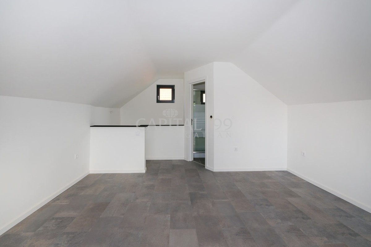Attic floor: bedroom 20.80 sqm, bathroom 3.30 sqm, balcony 6.60 sqm.