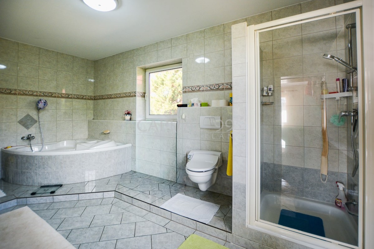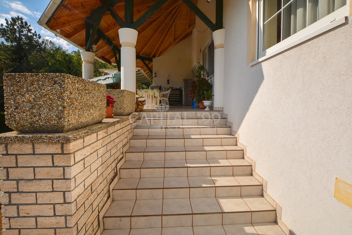 code number: 4339Stunningly located villa near forest in Vonyarcvashegy is for sale. The house was built in quality construction material in the yar 1998. The house comes with 4 storeys. The cellar comprises a lounge for friends' gatherings, and other rooms fit for use as vine cellar. The gorund floor comes with a residential unit, a wellness unit and a double garage. The wellness room is fitted with sauna and jacuzzi. The first floor is characterized by large rooms, on the first floor yus can find the extensive sitting room with open-plan kitchen. A roofed, south facing terrace opens from the kitchen. In the attic floor there are several bedrooms and bathroom for guests. The house is heated via gas central heating, and additionally there are also a fancoil heating system and a tiled stove at disposal. For the backing of the electricity consumption coming from the mains a 8kW solar cell system was also installed in the house. The safety of the house is ensured by an alarm system with cameras.
