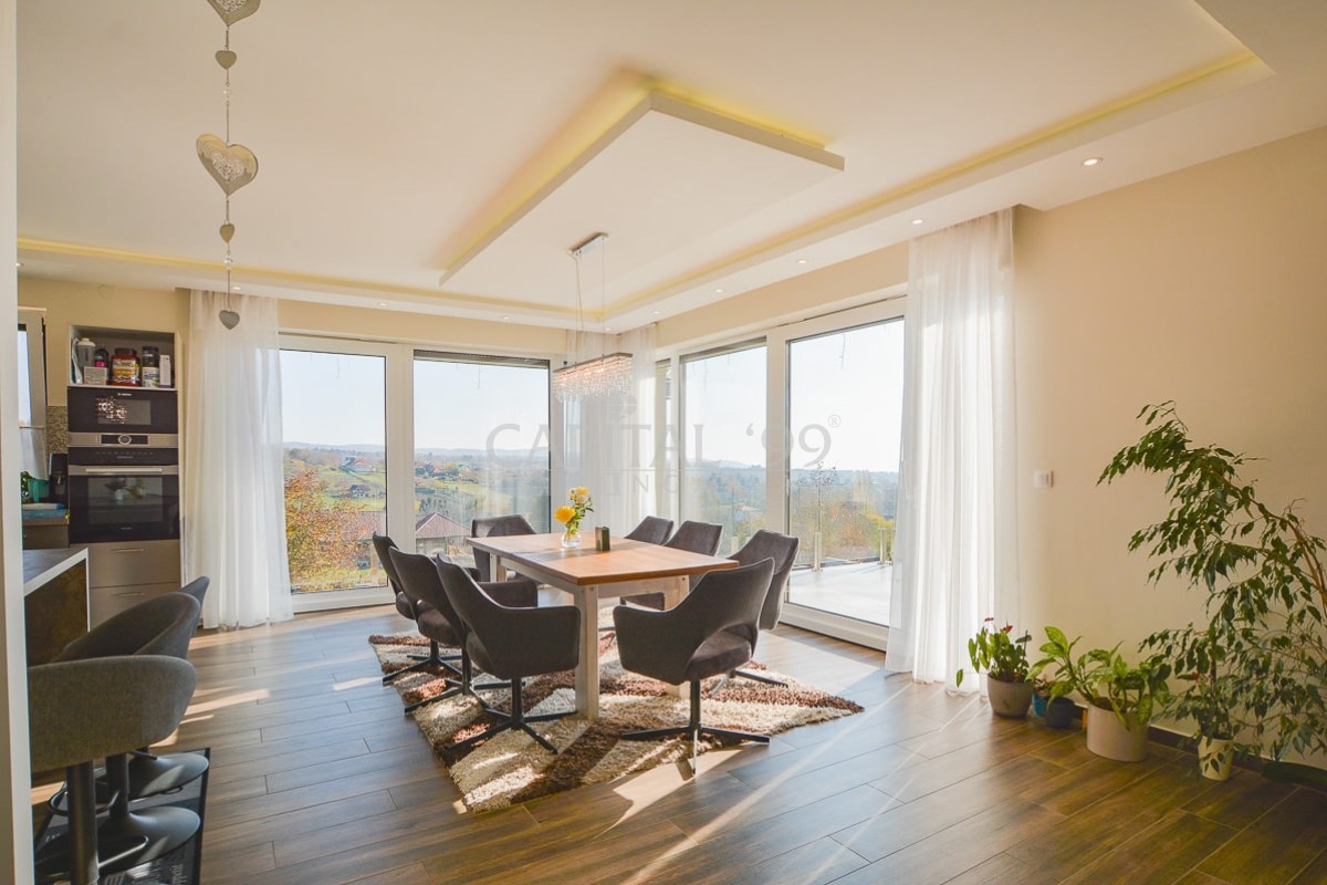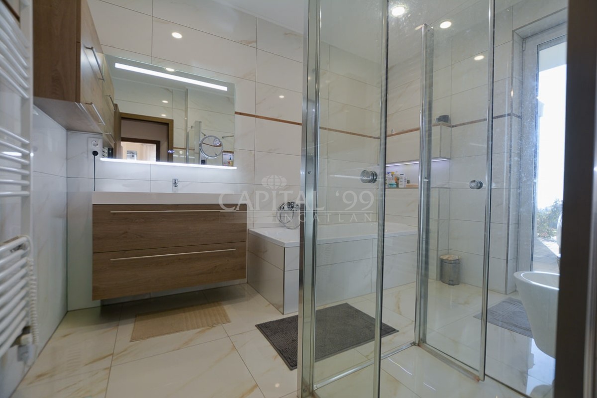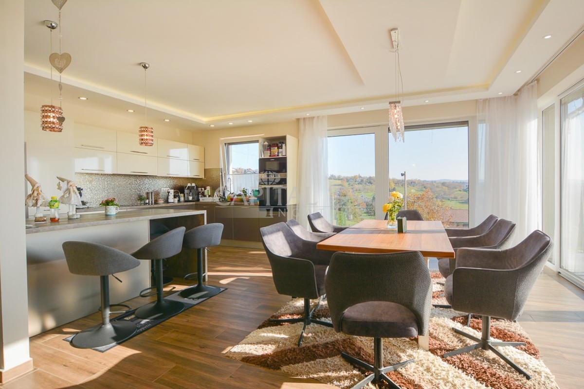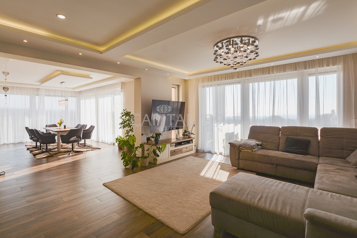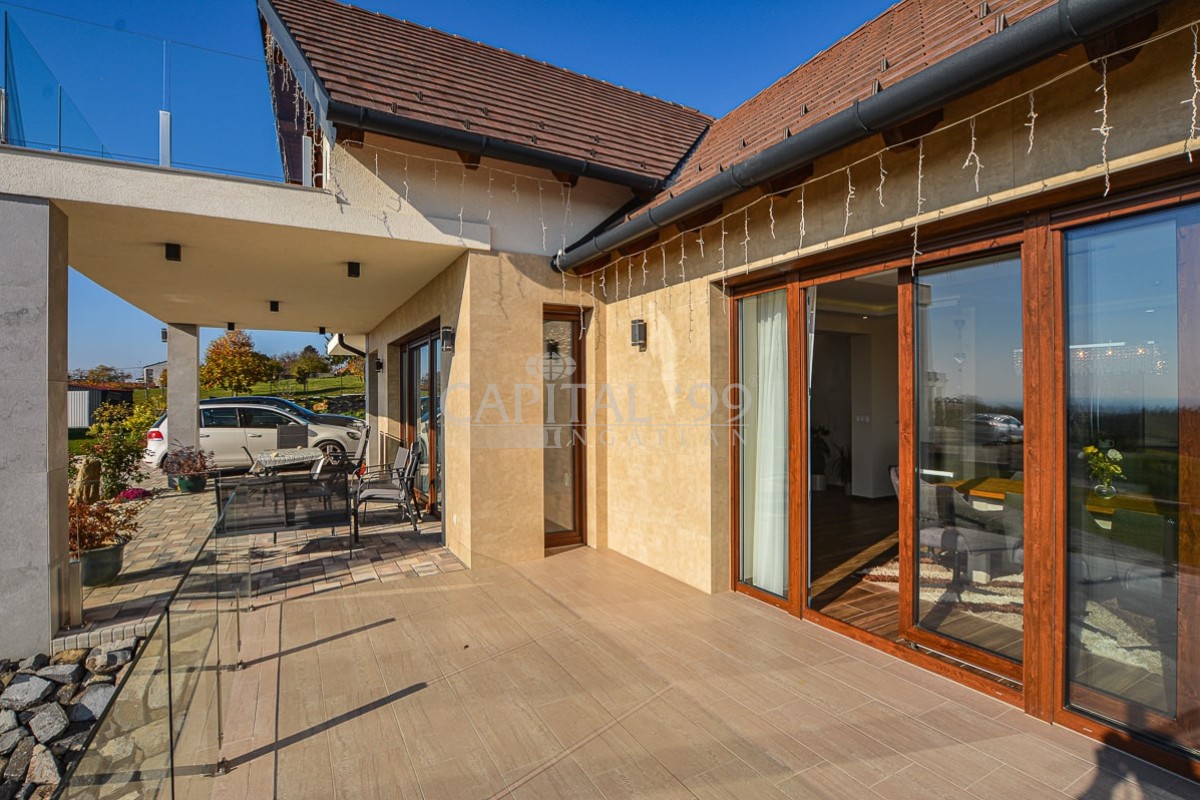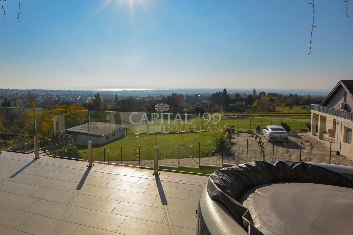 code number: 4349Centrally located in Cserszegtomaj is this detached house built on a lot with unobstructed and unobstructable panoramic view of the Lake Balaton for sale. The house comes with 3 storeys. In the cellar you can find hobby rooms, sauna, fitness room, vine cellar suitable for friends' gatherings, and a garage for 3 cars. The ground floor comes with a huge living room, kitchen, several bedrooms and bathrooms. The house is characterized by large rooms. An open and roofed south-east facing terrace opens from the kitchen. The attic floor also comes with large, very well useable rooms with access to terrace. An unobstructed lake view opens from both ground floor and attic floor terraces. The lot is very well tended, it is endowed with a summer kitchen + hobbyroom, and a heatable swimming pool. The house was built in quality building materials. For permanent residence is this house an ideal choice. This property is a really rear find on the market.