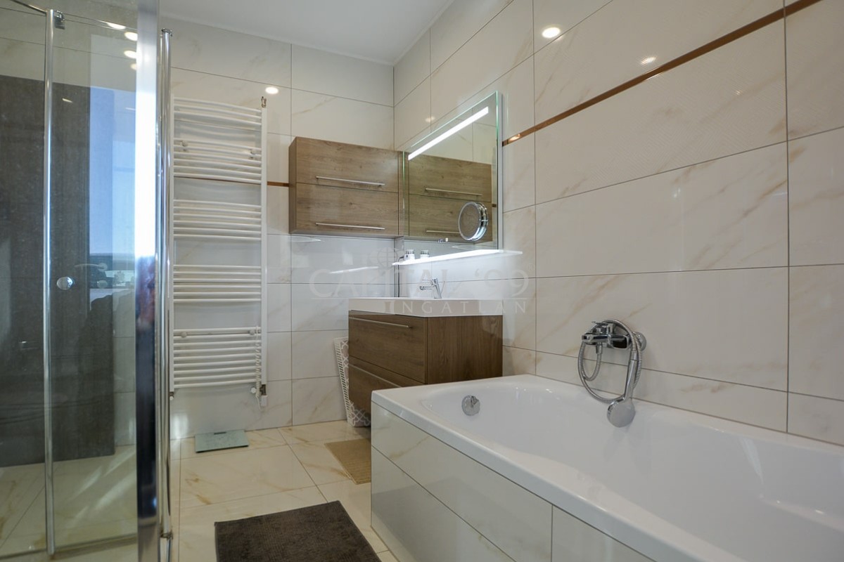 Attic floor: bedroom 21.75 sqm, bathroom + toilet 5.92 sqm, bathroom + toilet 5.92 sqm, bedroom 21.97 sqm, hall 14.41 sqm, staircase 5.60 sqm, heating room 7.35 sqm, terrace 18.29 sqm.