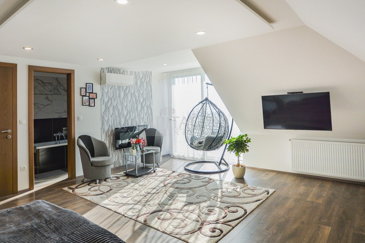 The settlement where the property is situated lies 2 km from Hévíz and 3 km from the Lake Balaton. The village is exceptionally peaceful and quiet. Hévíz, where the largest natural thermal lake of Europe is situated, is suitable for outdoor bathing all year round. The settlement is like a garden suburb. There is a grocery store, a post office as well as restaurants in the settlement. The petrol station is 4 km away.