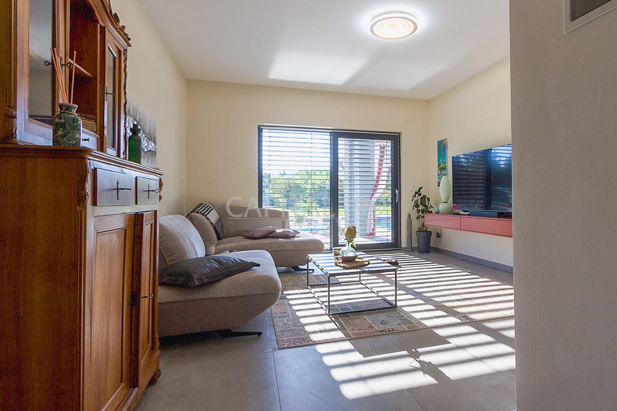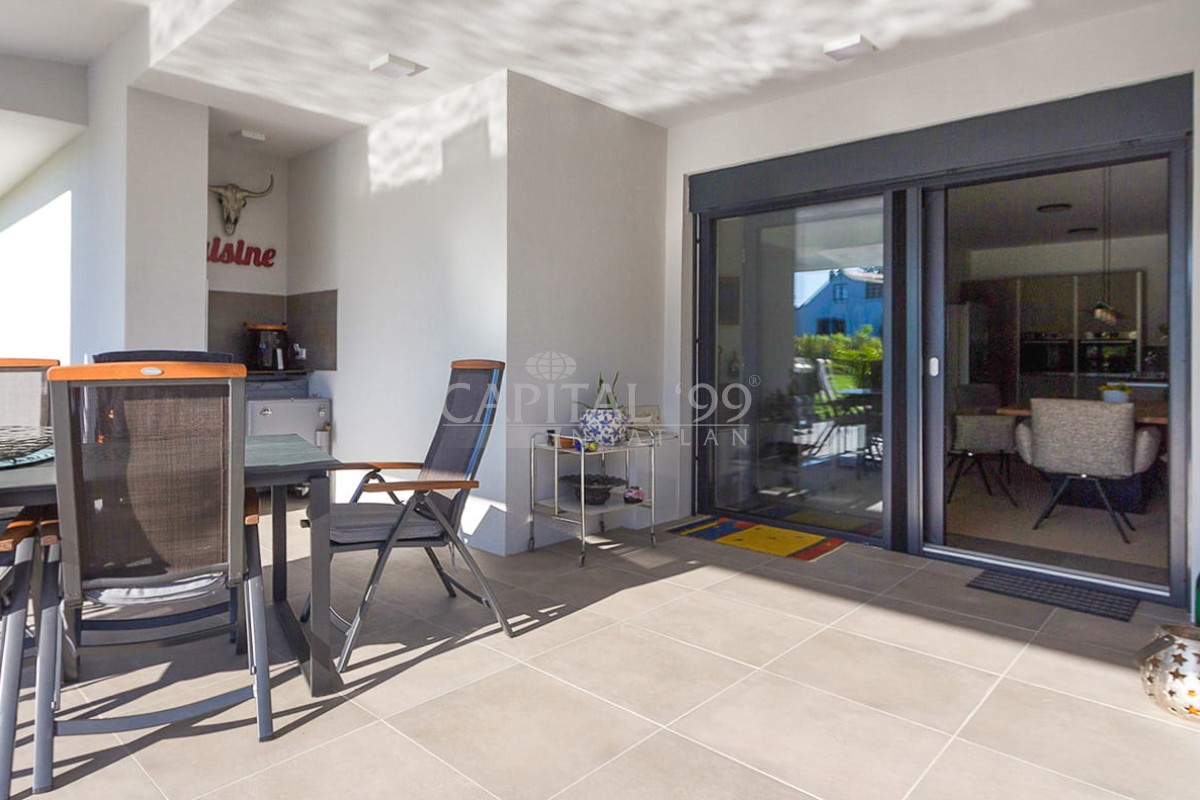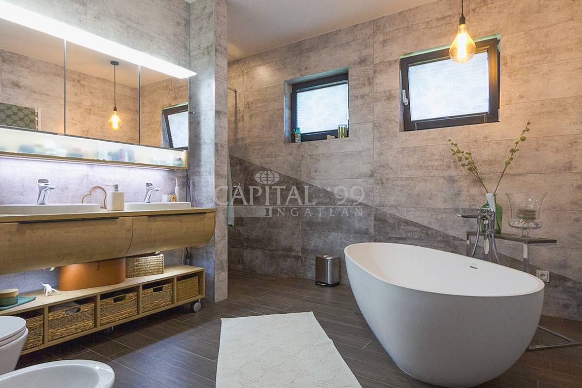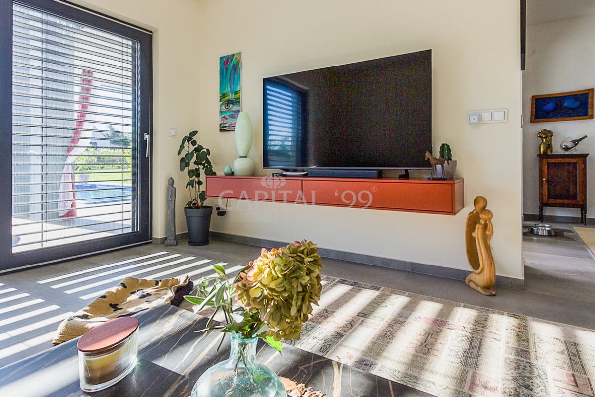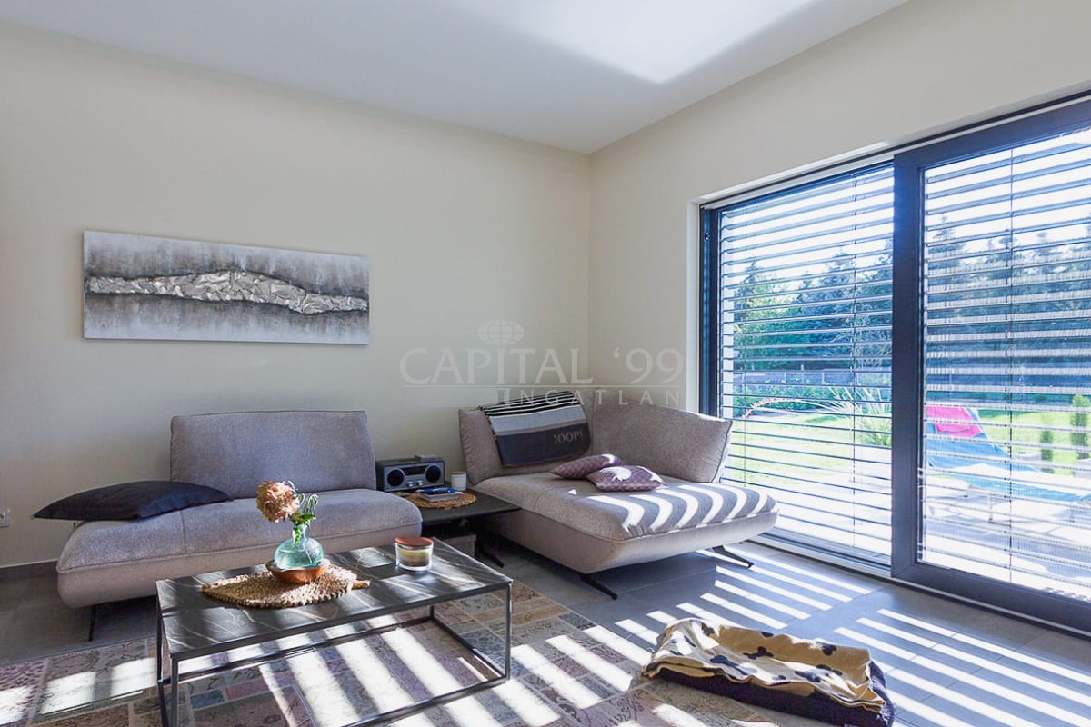 code number: 4357High-standard detached house built in very good quality located in Cserszegtomaj, in a silent street without transit traffic. The house is as new, it is heated via underfloor heating system, which is aided by a solar system. The house is fitted with air conditioners. The tiles, parquet, windows and doors are also of high quality. The lot is lovingly tended, it is endowed with a roofed swimming pool. The garden comes with an irrigation system. There is also a 3 m3 rainwater tank available. The house comes with roofed, practicable terraces, and a 57 sqm garage as well, which is fitted with a workshop-corner. The width of the garage gate amounts to 6 m. This is a high-standard house which comes with an elegant kitchen and spacious rooms. The living room is endowed with a fireplace. This property is well worth a visit, it is a house of excellent quality, you won’t be disappointed! It is the ideal choice for those who seek silence and tranquility. Hévíz and the Lake Balaton is a 10-minute drive.