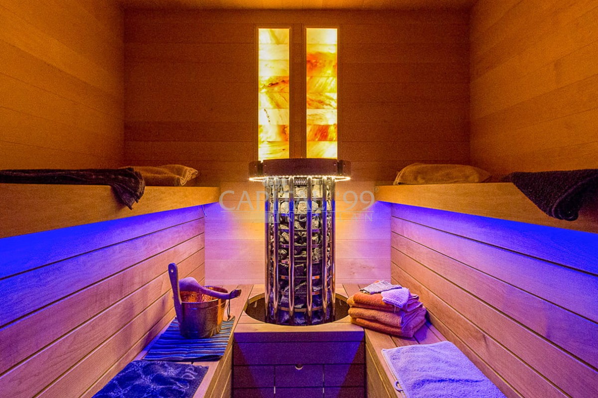 • The house is fitted with sauna, the garden is fitted with swimming pool.