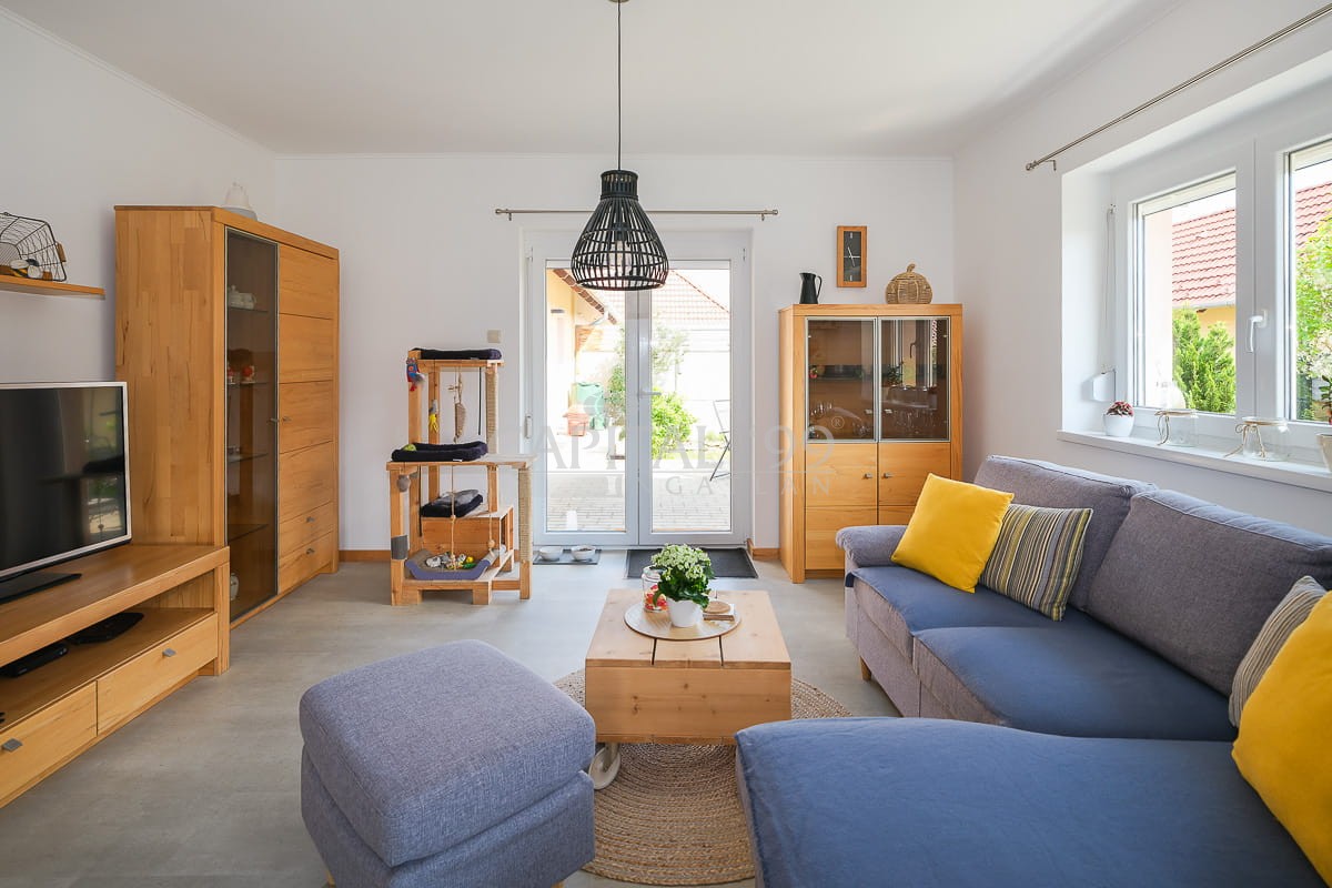 We offer this residential house built in 2015 in excellent condition, located in the centre of Cserszegtomaj in a calm side street for sale. The house lies on a lovingly tended, fenced-off 800 sqm lot, with a unique athmosphere thanks to some well selected features like decorative fence, well maintained lawn, fruit trees and ornamental plants.