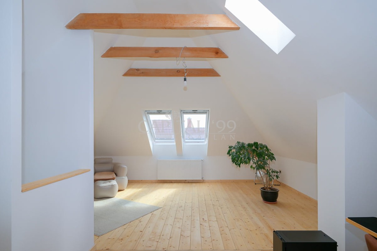 Attic floor 60.62 sqm: sitting room 33.43 sqm, corridor 1.90 sqm, bathroom 8.06 sqm, bedroom 14.11 sqm, walk-in wardrobe 3.12 sqm.