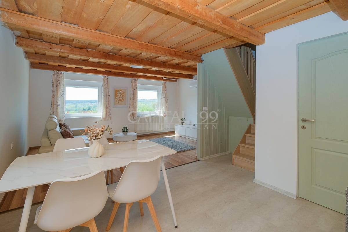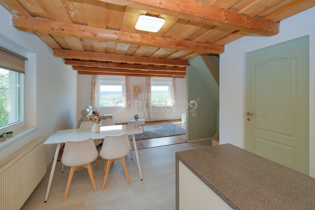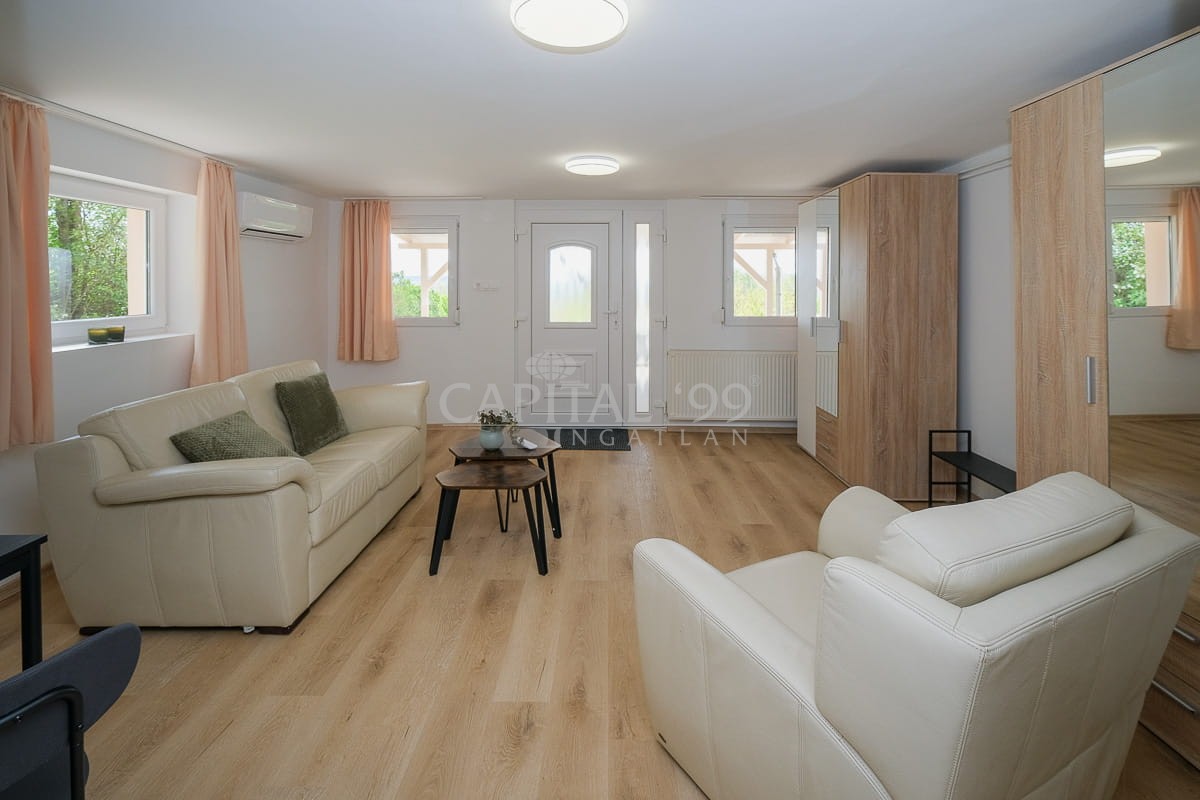 code number: 4378Residential house located in green area in Cserszegtomaj, in a calm side street is for sale. The house is registered at the land registry as farm building. The house comprises two dwelling units, which have separate entries each. An unobstructed nice panoramic view of the spa town of Hévíz opens from the upper residential unit. The building is heated with a gas central heating system, and additionaly there were solar cells installed, with a net metering settlement of account. The furniture as seen in the photos are included in the purchase price. The house lies on a nicely tended lot. This property is fit for use ideally both as a permanent residence or as a holiday home. Hévíz is 4 kms, Keszthely is 6 kms away from the property.