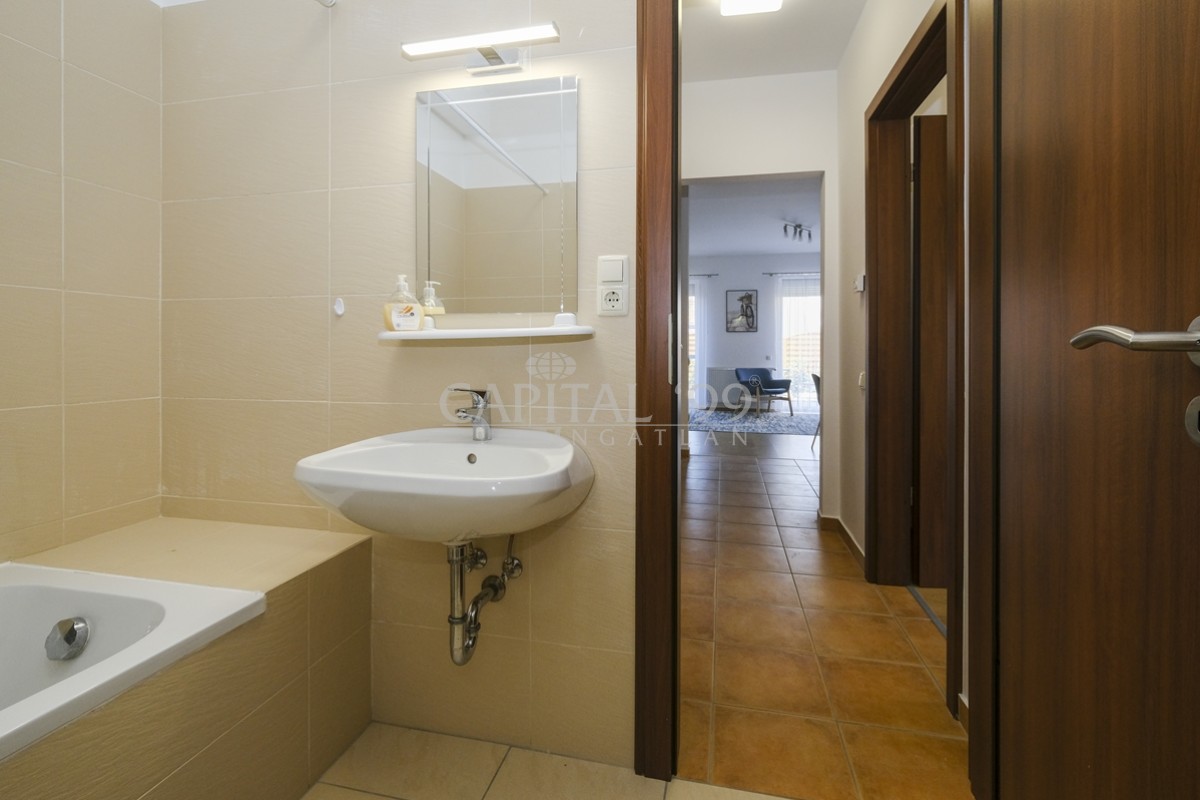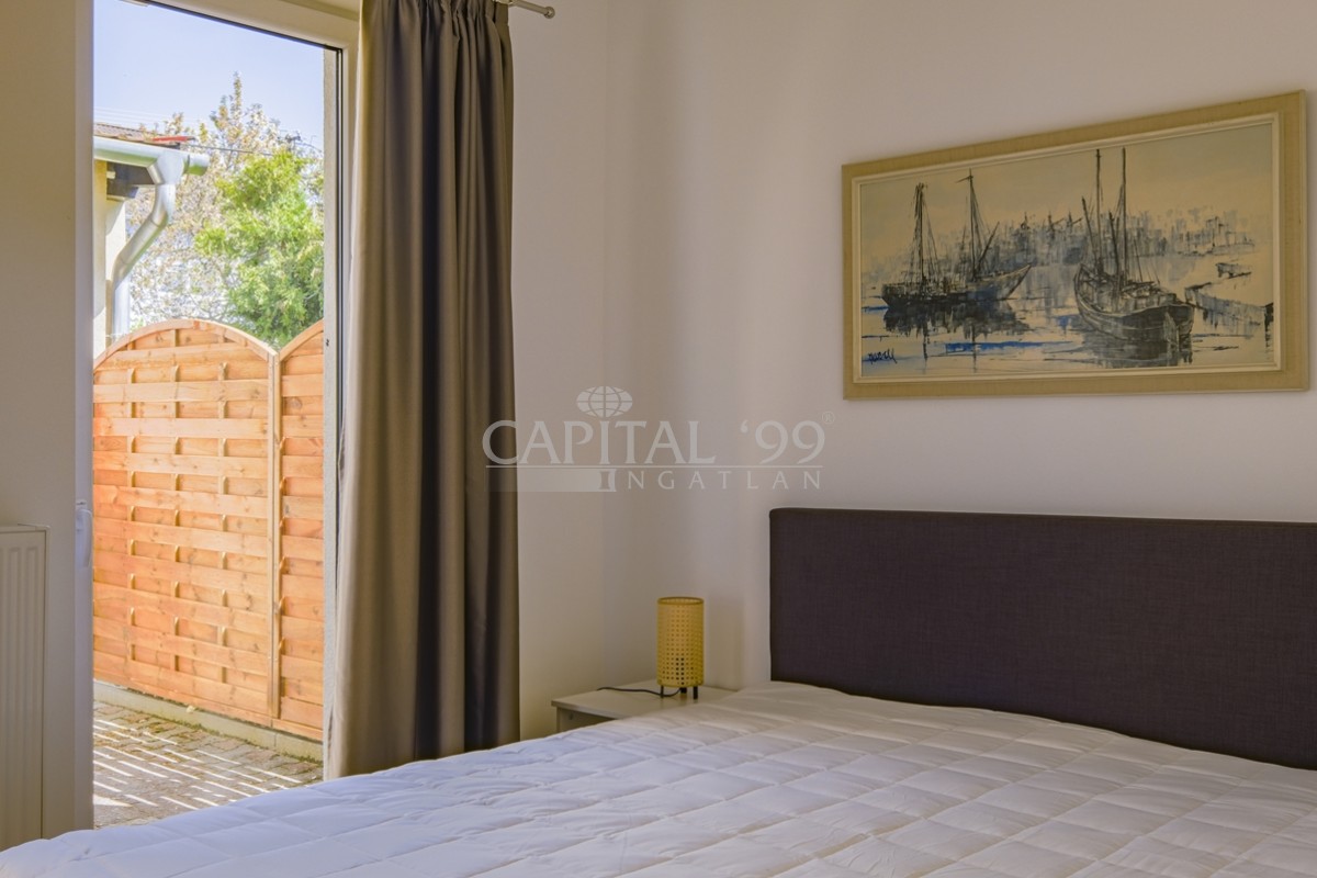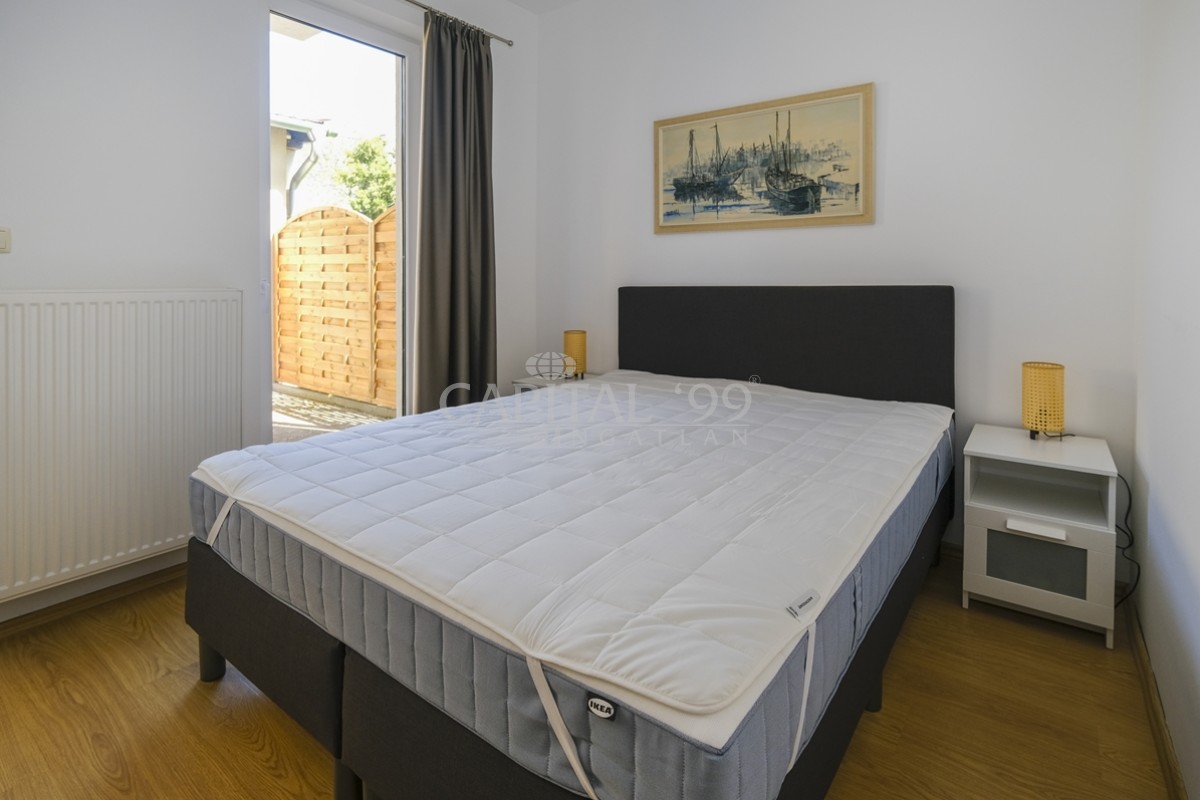 code number: 4240Ground floor apartment with two terraces,with own garden share in the eastern part of Keszthely is for sale. The condominium is located approx. 500 metres from a beach on the Lake Balaton, and at the same distance from the marina and from shopping facilities. The street is calm, without transit traffic. The property is in good condition, it can be occupied at once. Because of its layout it is absolutely fit for a permanent residence, and because its proximity to the Lake Balaton and the spa town of Hévíz it is also fit for a holiday home. The terraces are very well exposed to the sun, thus they enhance the comfort and useabilty of the flat, as the terraces are very well lit from early in spring until late in autumn. There is one car park for every flat within the lot. If needed, a garage can be also purchased to the flat.