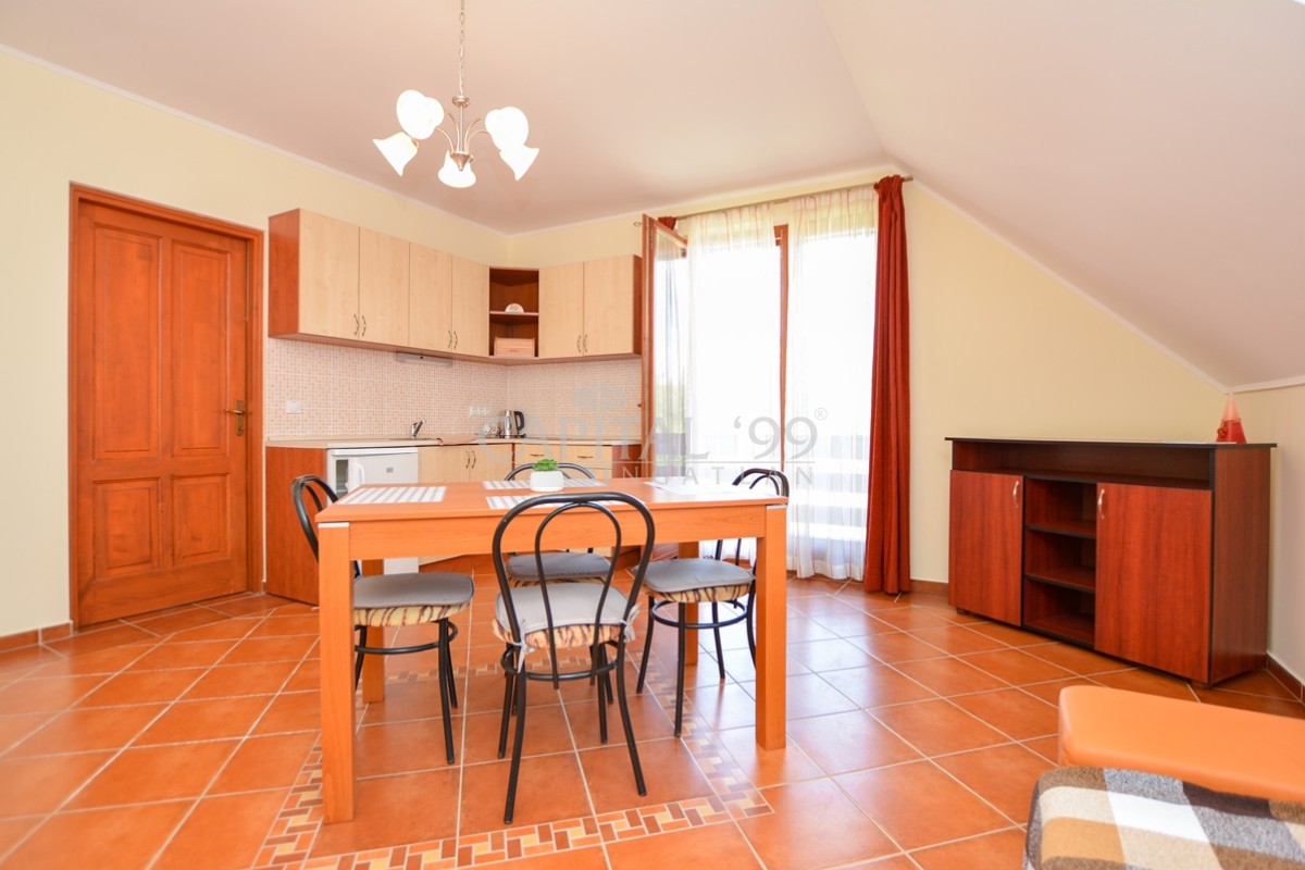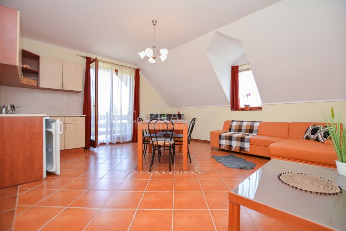 code number: 4336Constantly maintained flat on the upper floor of a 4-flat condominium is for sale. The flat can be occupied immediately, if needed. The quoted sales price is fully furnished. The flat is heated by geothermal energy via underfloor heating. The value of the installation of the H-tariff system is also included in the purchase price. The housing estate, where the flat is located, has a stunning natural setting, next to a forest. The golf course in Zalacsány is 1 km, the thermal bath of Kehidakustány is 2 kms, the spa town of Hévíz is 12 kms, the Lake Balaton lies 20 kms away. This excellent property is a great choice for investment or for a holiday home!